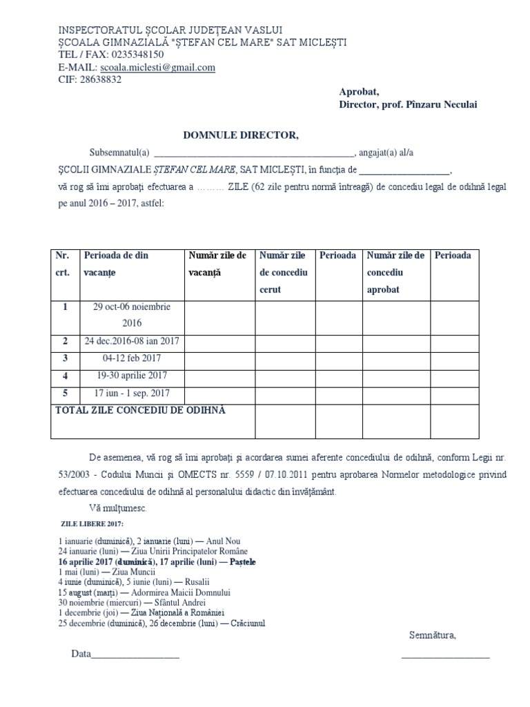 untuk "Cerere Tip Pentru Concediu De Odihna"