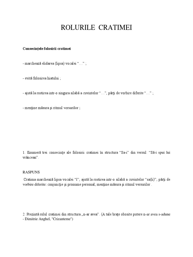 Cratima este folosita pentru a uni cuvintele. Poate delimita enunțurile din care este format un text, iar în cuprinsul unui enunț, unități sintactice interioare, aflate în diferite raporturi de coordonare. Adolescenti / acum 9 ani.