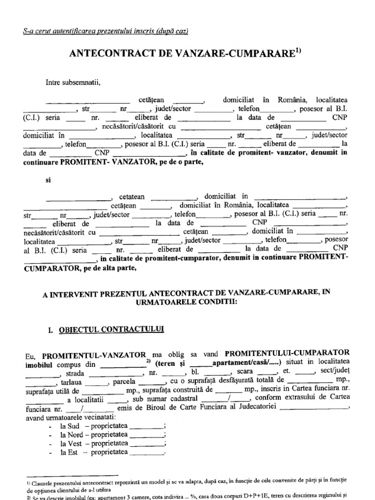 Acte de identitate parti (vanzator si cumparator); Buna!am si eu o mare rugaminte la dumneavoastra!in luna august 2014 am cumparat 2160 m2 de teren,din care 850 intravilan si restul extravilan.pentru cel intravilan am facut acte notariale,iar pt.cel extravilan un precontract de vanzare cumparare,cu toata suma achitata de bani,150 milioane bani vechi,o invatatura de la un angajat al primariei,ca. Acte de proprietate asupra imobilului ce face obiectul tranzacţiei (după caz: