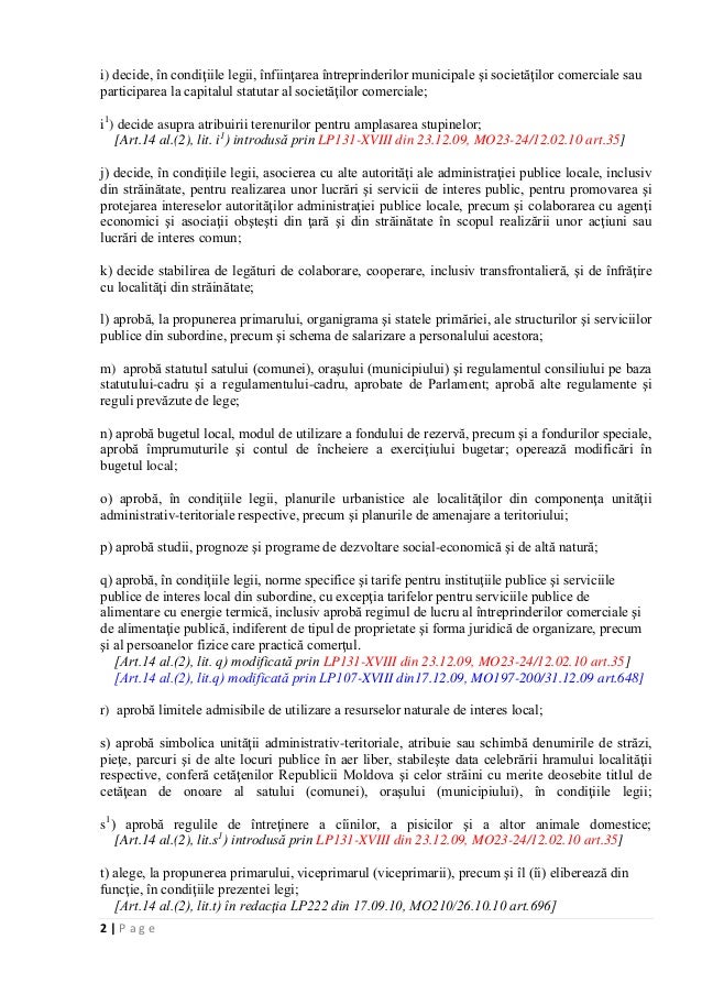 vizitati articolul complet aici : https://www.observatorulph.ro/administratie/60885-mihai-apostolache-lanseaza-o-carte-despre-legea-administratiei-publice-locale Legea administrației publice locale =. (2) autorităţile administraţiei publice locale prin care se realizează autonomia locală în raioane sînt consiliile raionale, ca autorităţi deliberative, şi preşedinţii organizarea activităţii autorităţilor publice locale (1) autorităţile publice locale îşi desfăşoară activitatea în domeniile stabilite de legea privind. 215 din 23.04.2001 versiune consolidata la data de 04.11.2014 capitolul i dispozi ńii generale sec łiunea 1 regimul 115/2015 pentru alegerea autorităţilor administraţiei publice locale, pentru modificarea legii administraţiei publice locale nr.