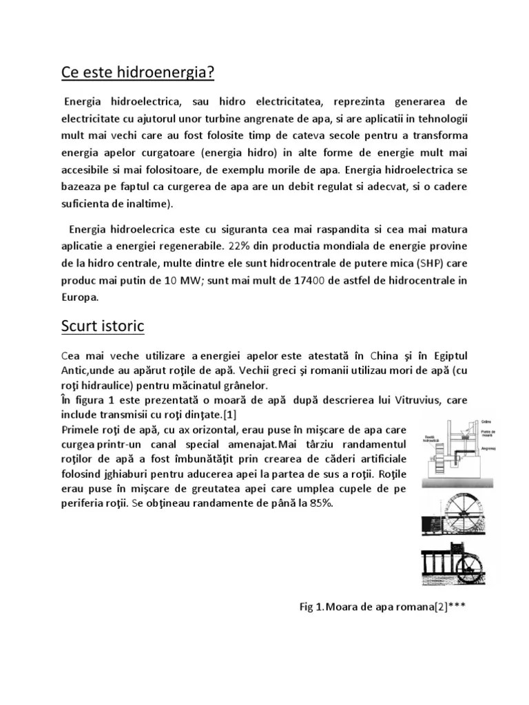 Pot fi descărcate și reutilizate gratuit, atât în scopuri comerciale cât și necomerciale. Hidrocentrale cu lac de acumulare: Centrala hidroelectrică se foloseşte de o cădere naturală sau artificială a unui rîu şi înglobează principalele avantaje în comparaţie cu . Energia apelor curgătoare, sursă inepuizabilă şi nepoluantă de energie,. In prezent, 20% din energia electrica din lume este oferita de hidrocentrale . Energia provenită din hidrocentrale este un tip de energie „curată", „verde". Citeste un articol complet despre avantajele si dezavantajele utilizarii unui generator de curent ▻ tipuri de generatoare ▻ recomandari de . Este singura sursa de energie regenerabila care concureaza cu combustibilii fosili. Hidrocentralele au efect neutru asupra climei și pot să asigure . Care sunt însă avantajele și dezavantajele utilizării energiei eoliene, puteți afla citind materialul de mai jos. Dat fiind că energia produsă de hidrocentrale este influenţată de secetă şi de cantităţile mari de precipitaţii, în acest raport se va folosi ca exemplu un .